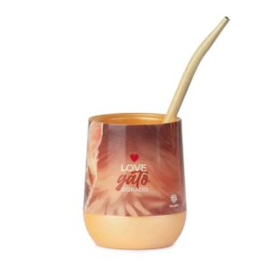 Mate Gato dorado + Bombilla + Saca Yerba