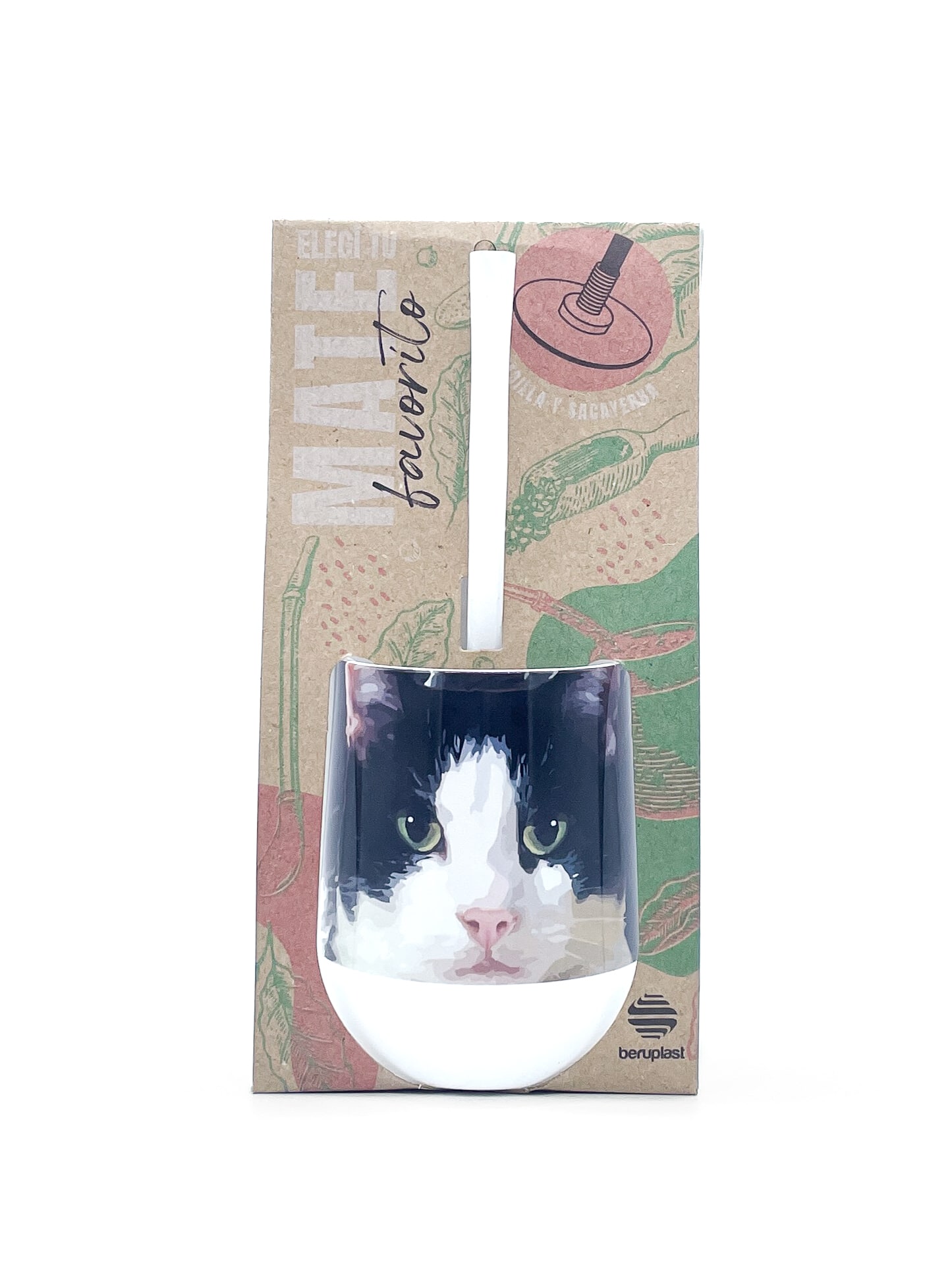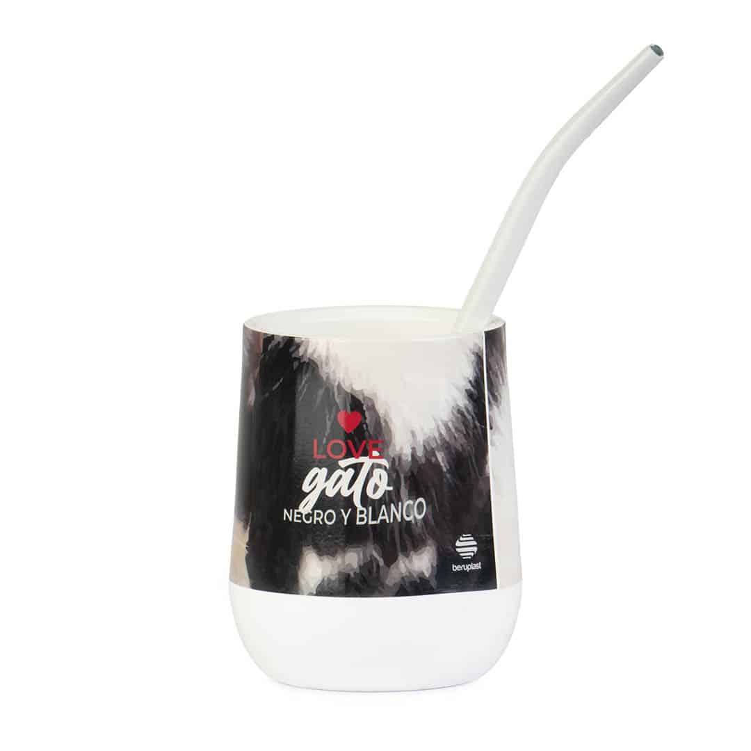 Mate Gato blanco y negro + Bombilla + Saca Yerba