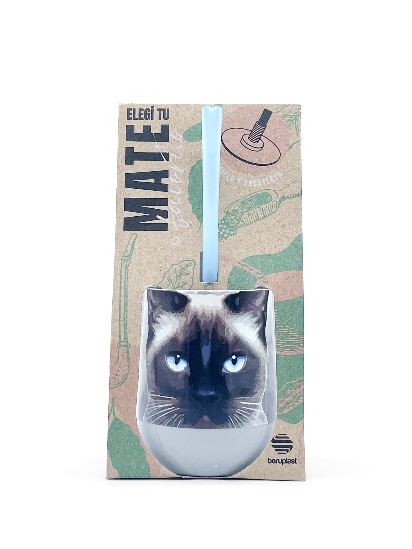 Mate Gato Siames + Bombilla + Saca Yerba