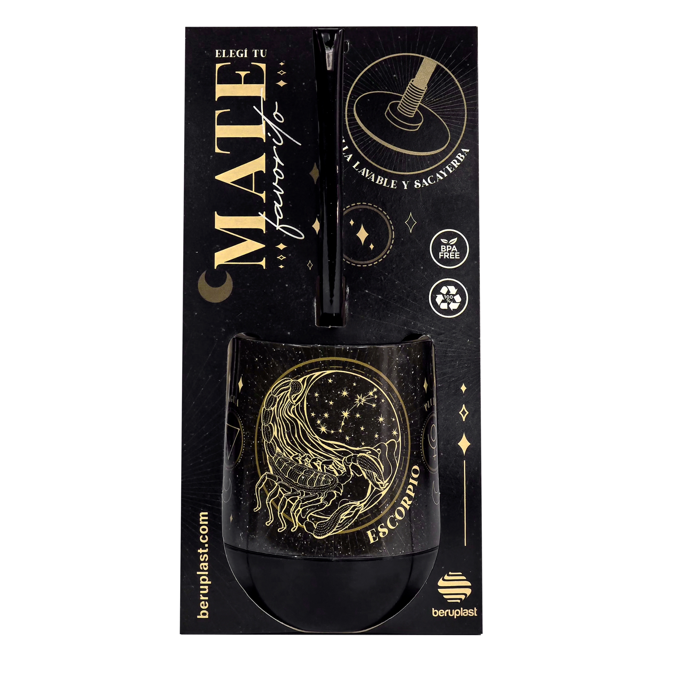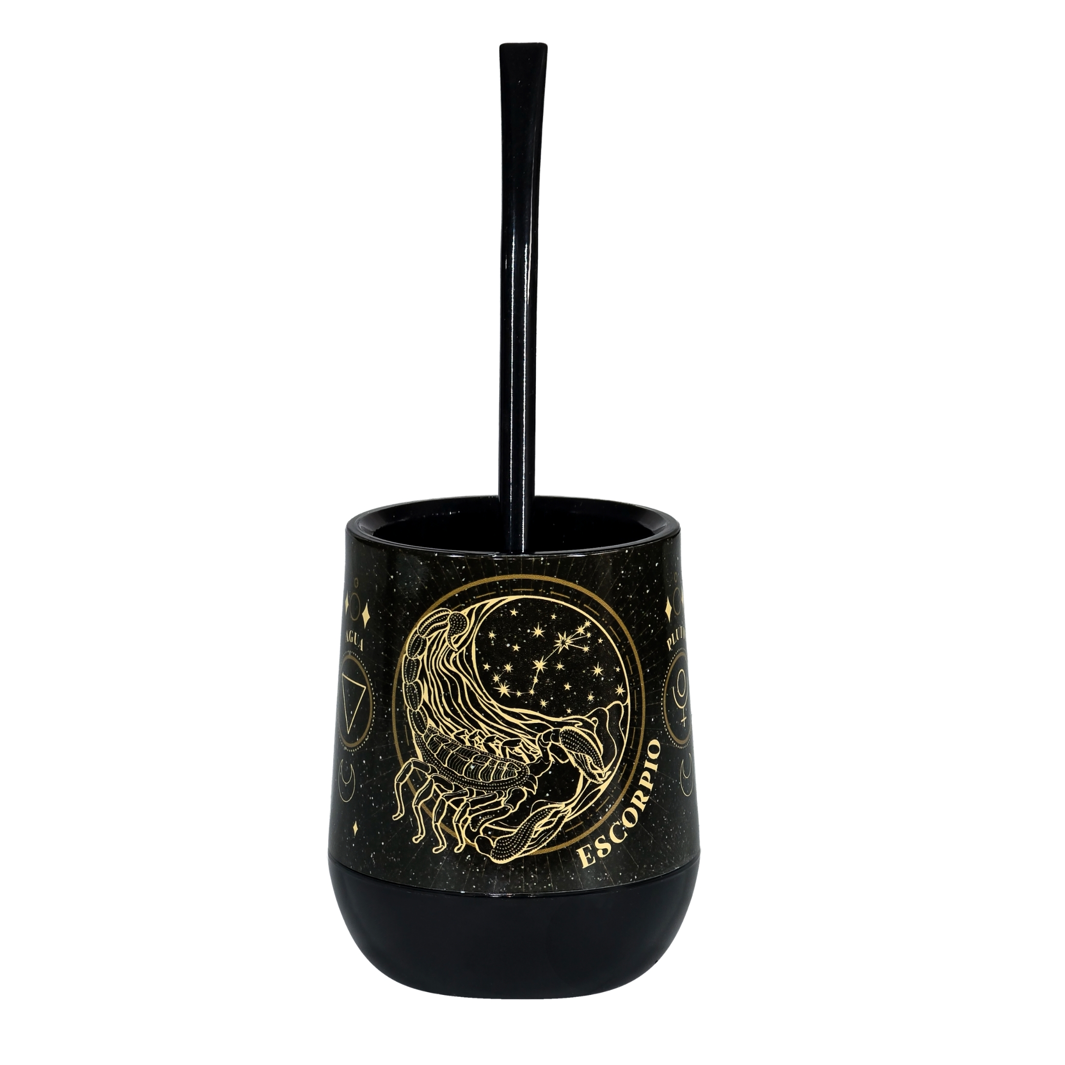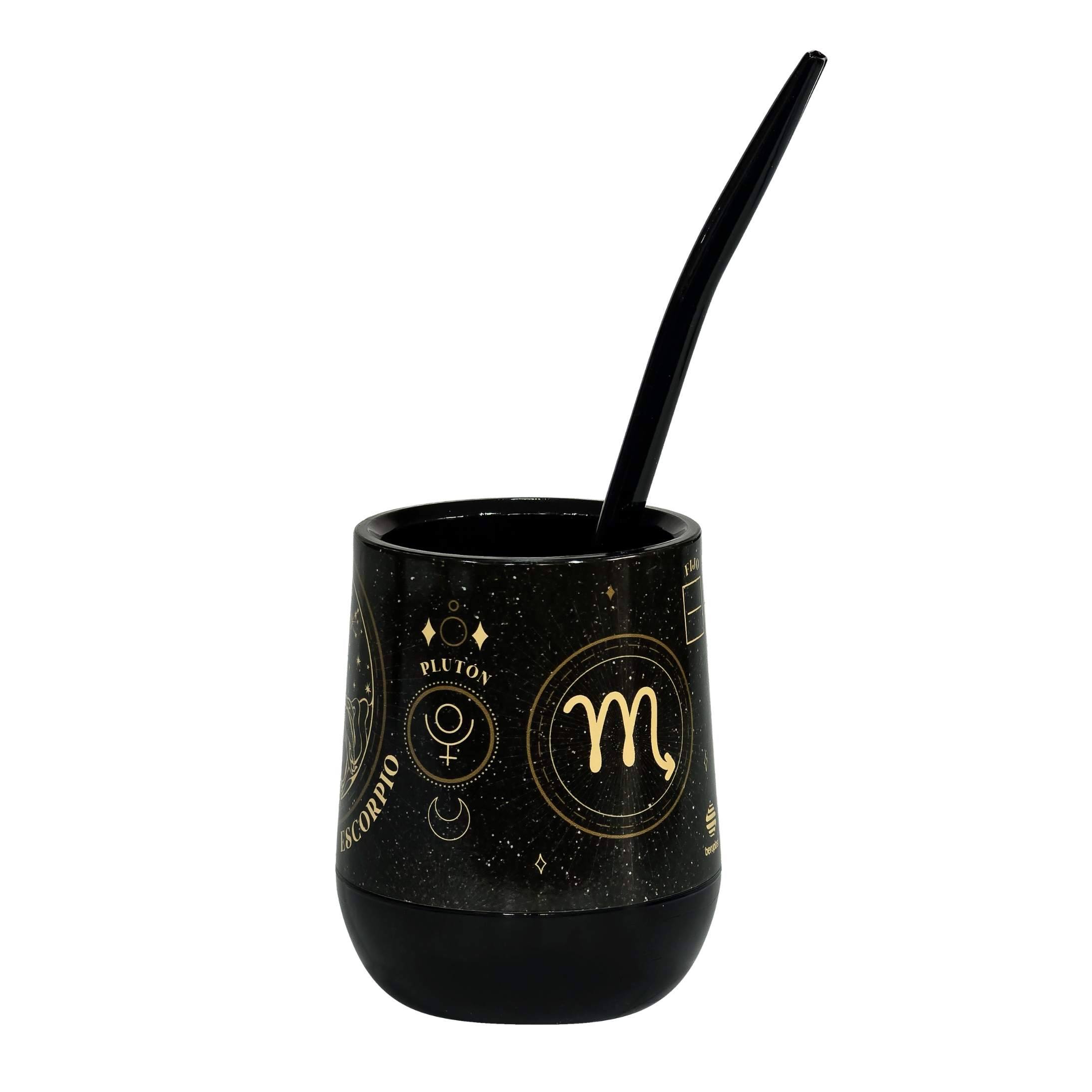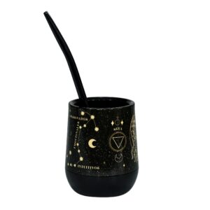 Mate Signos Negro Escorpio + Bombilla + Saca Yerba