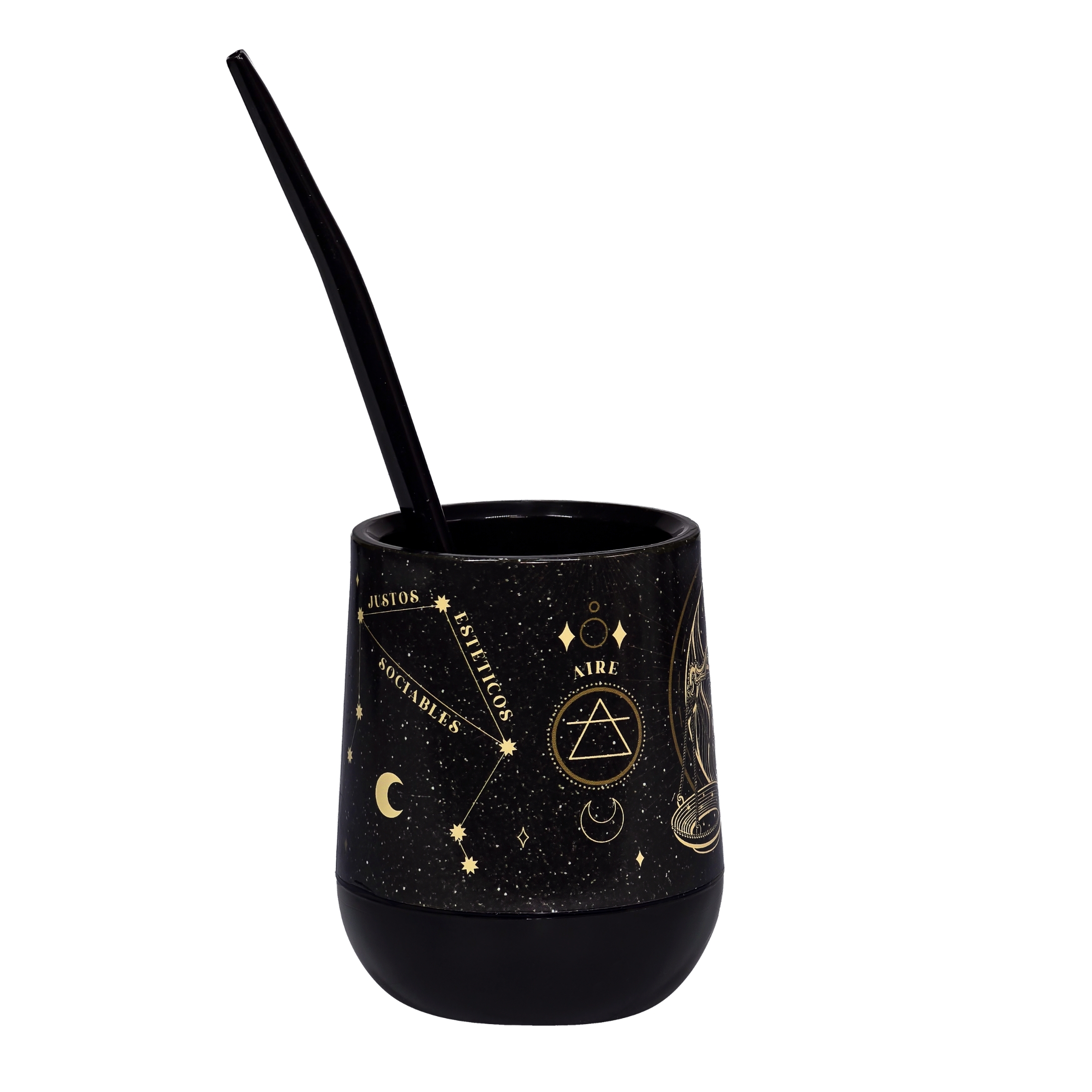 Mate Signos Negro Libra + Bombilla + Saca Yerba